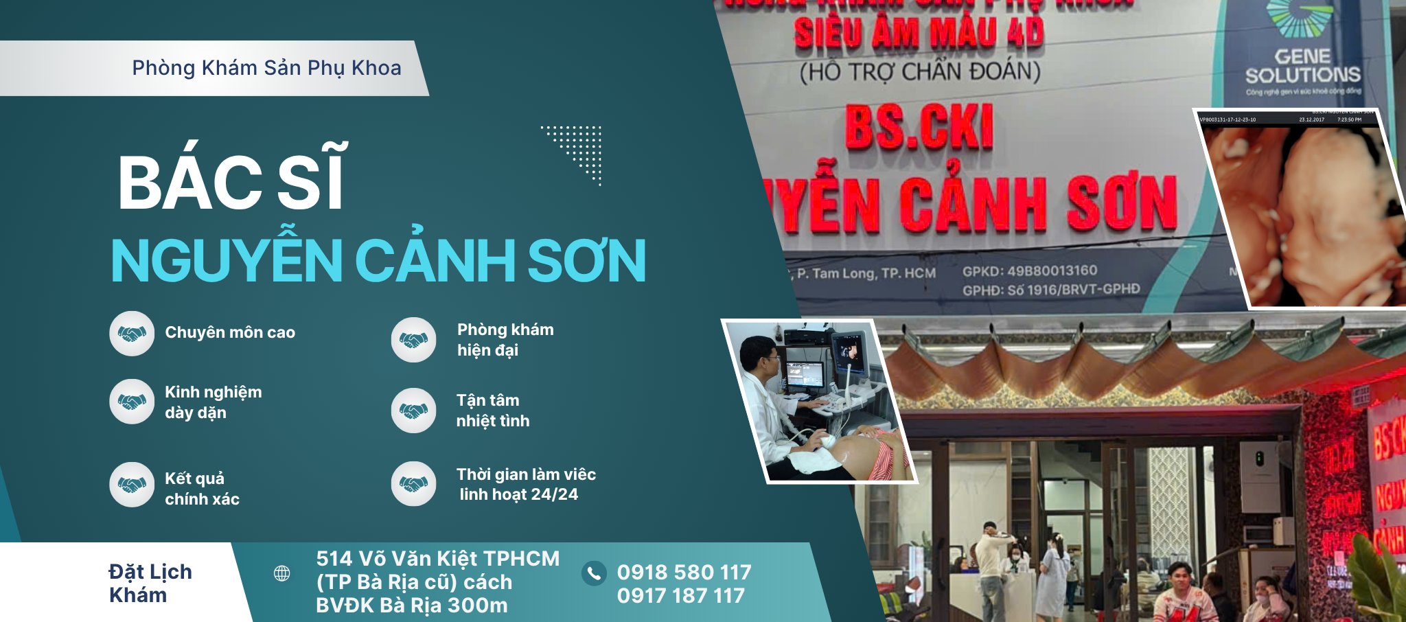 PHÒNG KHÁM CHUYÊN KHOA Sản Phụ Khoa do Bác Sĩ Nguyễn Cảnh Sơn trực tiếp khám với nhiều năm kinh nghiệm làm trong BV Bà Rịa tại địa chỉ : 514 Võ Văn Kiệt, P.Tam Long, TPHCM(TP Bà Rịa Cũ ) cách Bệnh Viện Đa Khoa Bà Rịa 300m .